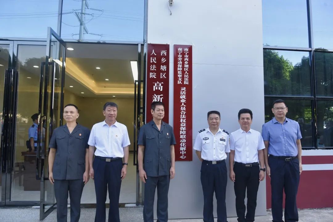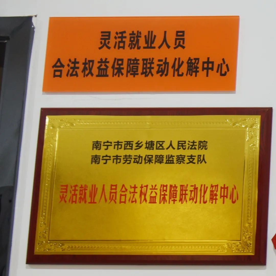 市法院、人社部门为进一步发挥机制优势,促成西乡塘区人民法院与市劳动保障监察支队成立灵活就业人员合法权益保障联动化解中心。该中心属全国首创,并在高新法庭和高新区劳动保障监察大队挂牌,同时还在高新区劳动保障监察大队处设立西乡塘区人民法院灵活就业人员合法权益保障巡回法庭,受案范围扩大至市劳动保障监察支队、西乡塘区劳动保障监察大队受理的涉及西乡塘辖区范围内的全部灵活就业人员的劳务报酬纠纷案件。