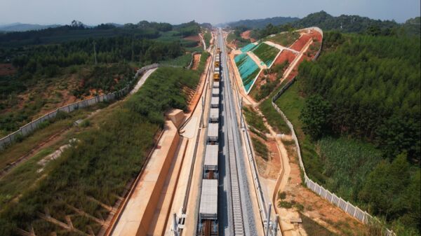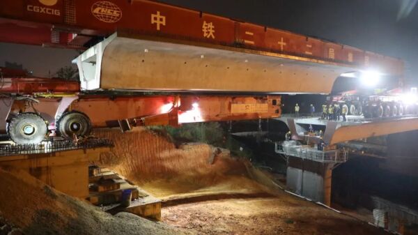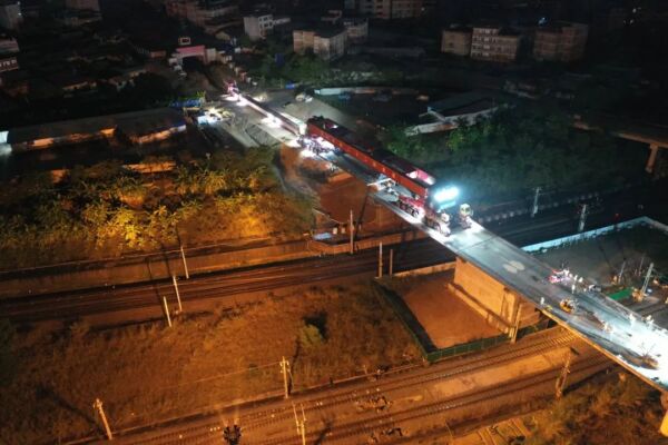 11月22日,南宁南货场双线特大桥最后一榀箱梁架设成功,这标志着南崇铁路全线架梁工程圆满完成,项目建设取得重大进展,为按期建成通车奠定了坚实基础。