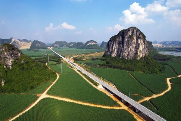 南崇铁路南宁南货场双线特大桥全长588m,位于既有铁路南宁南环线和南防线上方,这两条铁路是西部陆海新通道最繁忙的货运线路,施工难度大、安全风险高。
